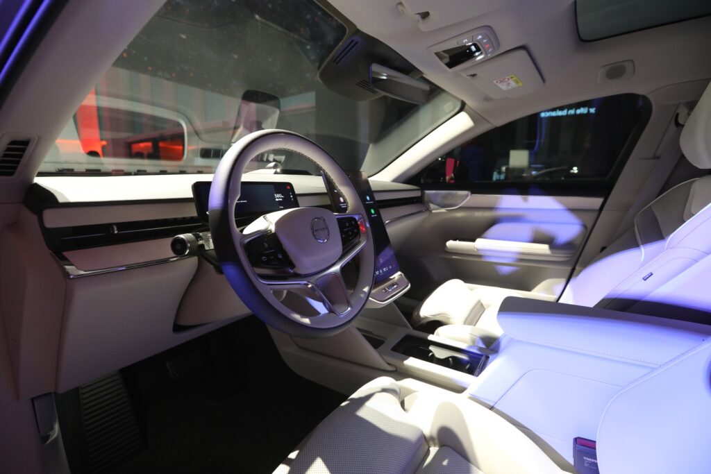 À l’intérieur, la Volvo ES90 offre un niveau élevé de raffinement et de technologie, avec des sièges électriques et chauffants dotés de mémorisation et de soutien lombaire, une sellerie Nordico respectueuse de l’environnement, un toit panoramique électrochrome, un éclairage d’ambiance, un écran central tactile de 14,5 pouces, un combiné d’instrumentation numérique de 9 pouces, un système audio Bose, les services Google intégrés, la compatibilité Apple CarPlay et Android Auto, ainsi qu’un affichage tête haute.